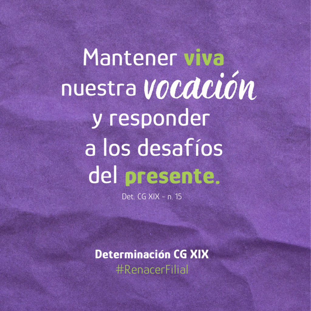 “Deseamos crecer en la responsabilidad personal y comunitaria de la formación permanente. Ser fieles a este compromiso es esencial para mantener viva nuestra vocación, responder a los desafíos del presente y no decaer en la entrega al Reino de Dios” (Determinación CG XIX n. 15)