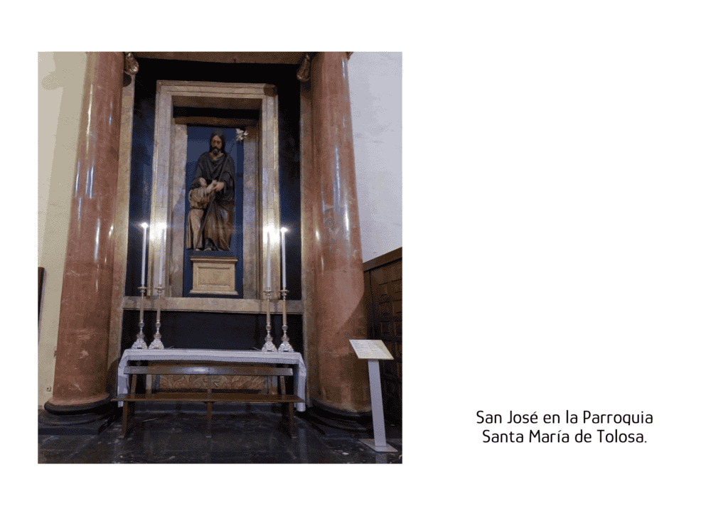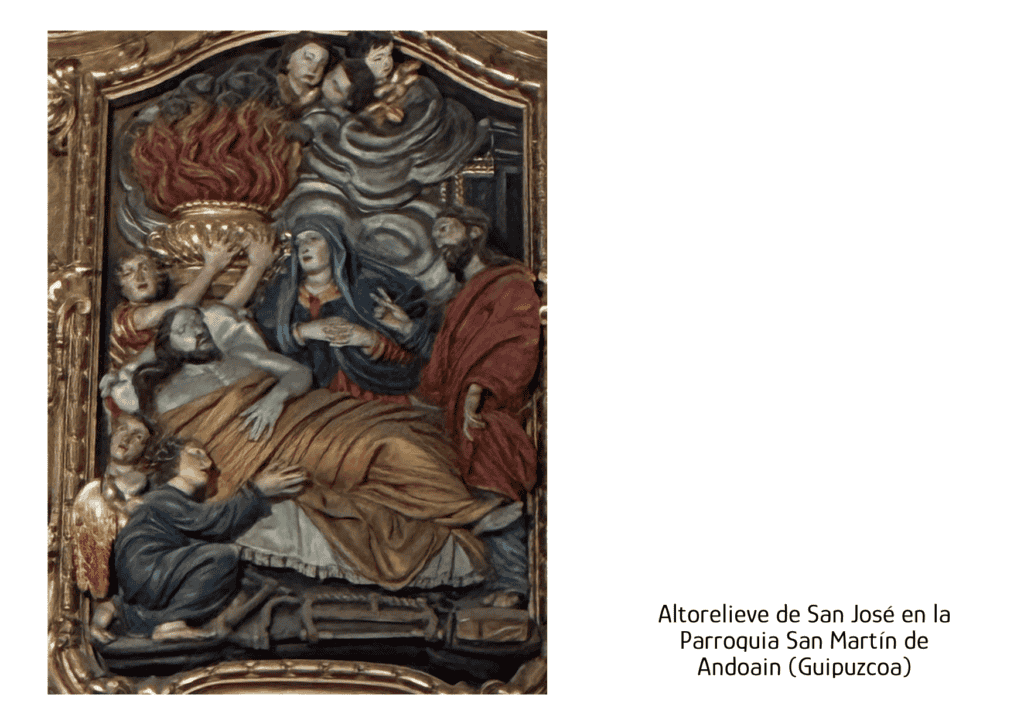 Encontramos uma imagem de São José, mais especificamente de sua morte, assistido por Jesus e Maria, no alto-relevo direito da igreja paroquial de Andoain, a cidade onde ela nasceu e a igreja paroquial onde ela foi batizada no mesmo dia em que nasceu, 31 de maio de 1845.
