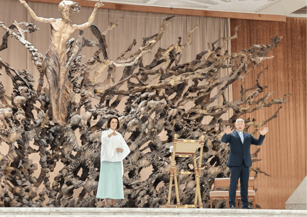O dia foi marcado por testemunhos nascidos da esperança, vindos de lugares tão diversos quanto a Amazônia e o trabalho com minorias étnicas na Austrália. Na entrada da Sala Paulo VI, uma exposição de murais sobre o cuidado com a criação, a fraternidade e a paz convidava à contemplação e ao compromisso, assim como uma apresentação de dança, imagens e palavras: Symphony of Creation.